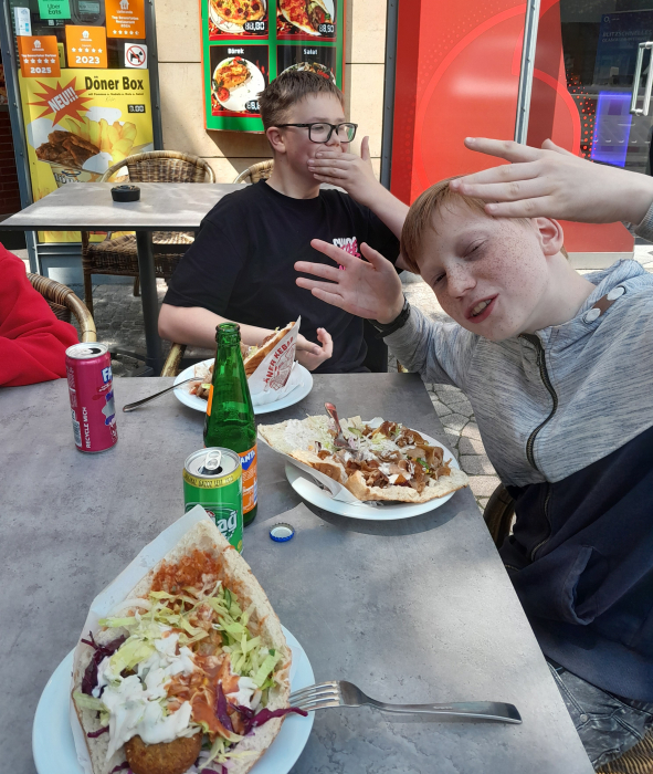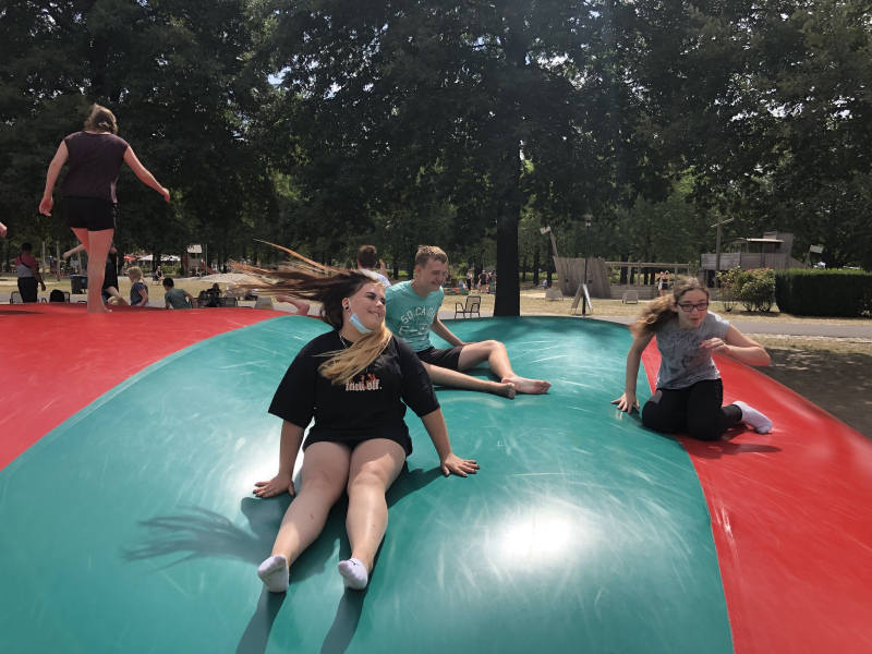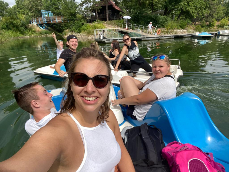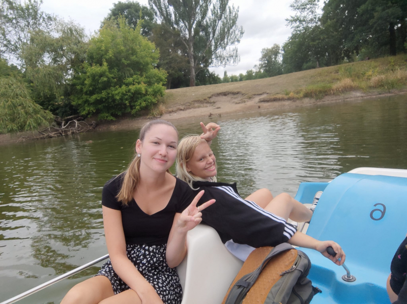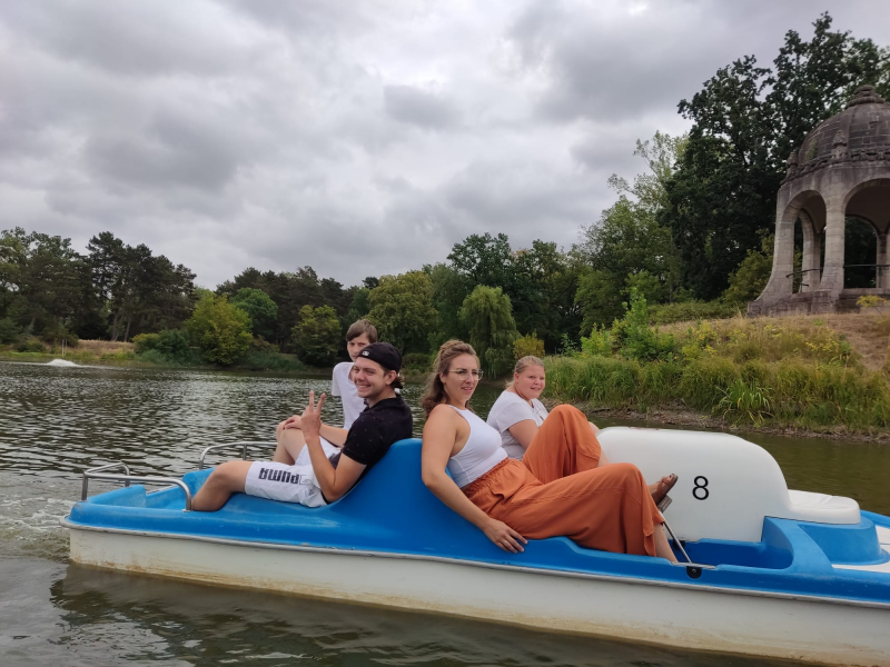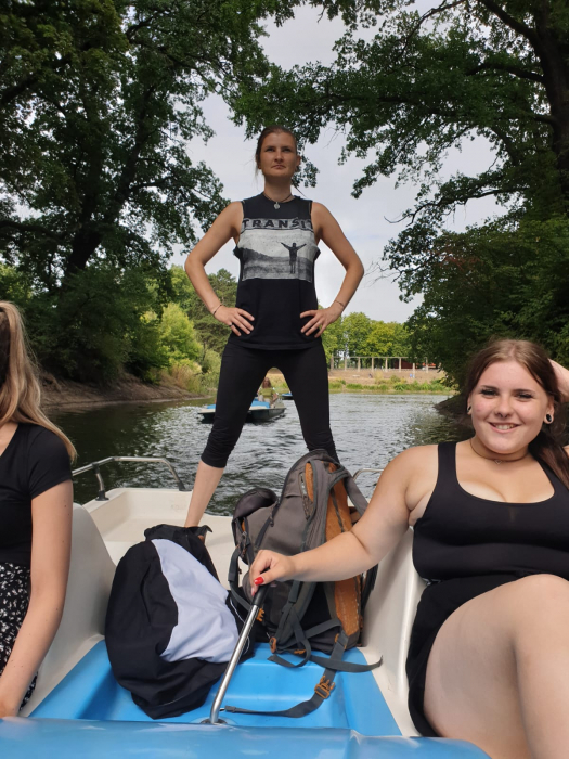 Der Donnerstag lief bei uns leider nicht wie geplant, da der Kletterpark im Elbauenpark aufgrund des heißen Wetters nicht geöffnet wurde. Nichtsdestotrotz erlebten wir einen schönen und entspannten Tag im Elbauenpark. Am Freitag, unserem Abschlusstag, wurden wir unfreiwilliger Programmpunkt einer Hochzeit auf dem Adolf Mittag See. Auf Tretbooten feierten wir schwankende Partys zu Hits wie „Cordula Grün“, „Hangover“, „Einmal um die Welt“ und vielen mehr. Man nannte uns die „Hochzeitscrasher“.