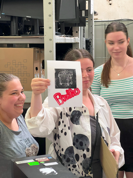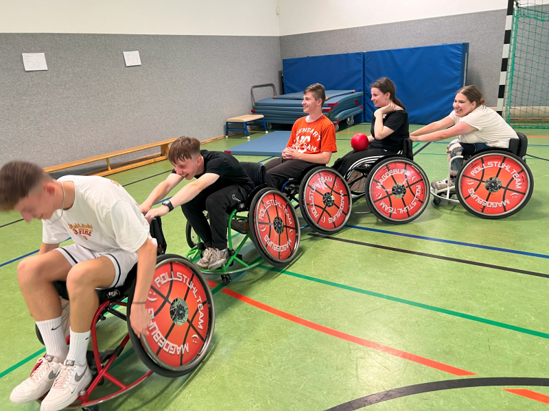 Auch in diesem Jahr fand eine gemeinsame Ferienfreizeit mit Schüler*innen der Schule am Sternsee und der Gemeinschaftsschule Wilhelm Weitling in der ersten Ferienwoche statt. Oftmals kommt es anders als gedacht und so war es auch dieses Mal. Wir haben das Programm für die Woche aufgrund der Wetterverhältnisse und den Bedürfnissen der Teilnehmenden anpassen müssen. So kam es, dass wir am Montag nicht in den Harz zum wandern gefahren sind, sondern in der Schule am Sternsee eine Kennenlernrunde gemacht haben, Rollstuhlbasketball gespielt und gemeinsam Pizza gegessen haben. Den Dienstag besuchten wir den Jersleber See für gemeinsames Volleyball- und Frisbee-Spielen, sowie zum Schwimmen, Entspannen und Sonne-Tanken. Den Mittwoch verbachten wir wieder an der Schule am Sternsee, um erneut Rollstuhlbasketball zu spielen (was es allen Teilnehmenden besonders angetan hatte) und gemeinsam vegan/vegetarisch zu kochen und zu backen. Dies wurde von allen Jugendlichen interessiert angenommen und für sehr lecker befunden und war uns als Team ein Anliegen, um eine nachhaltige Ernährungsform einfach umsetzbar erfahrbar zu machen. Am Donnertag haben sich die Teilnehmenden gewünscht, noch einmal baden zu gehen. Nach Anläufen bei mehreren Freibädern sind wir letztendlich im Erich-Rademacher-Bad gelandet. Am Freitag besuchten wir die Macherburg für einen Druckworkshop. Eine Gruppe hat sich an 3D-Druck probiert und die andere Gruppe am Linolschnitt. Dabei sind tolle Kunstwerke entstanden und bei dem einen oder der anderen ein ganz neues Talent an sich entdeckt worden.