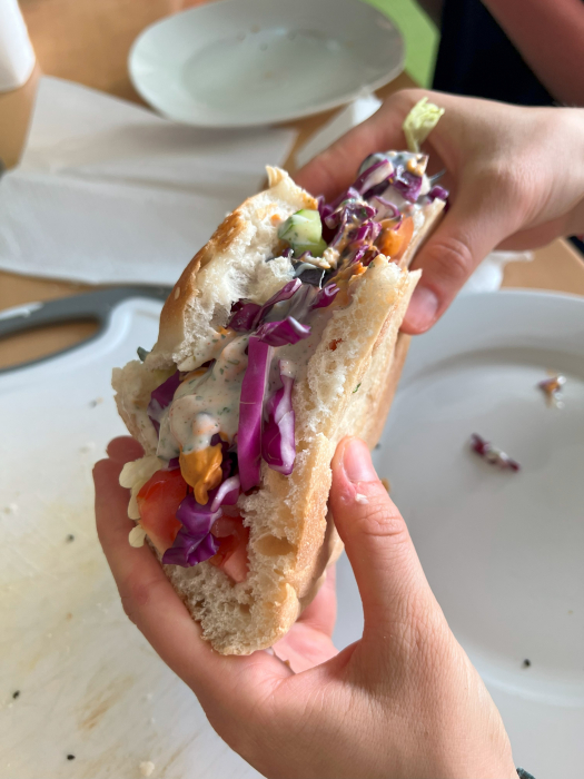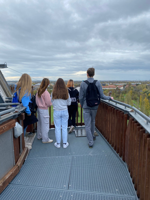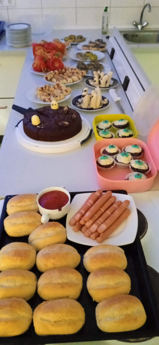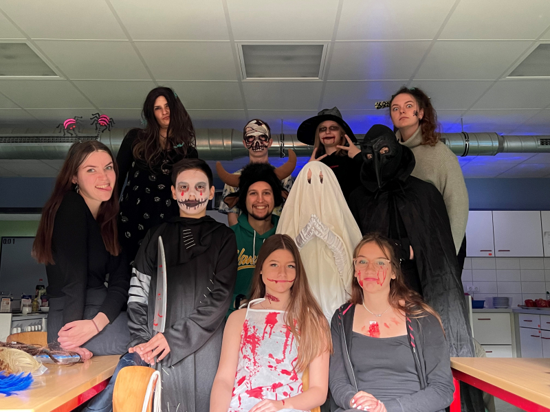 Zunächst blieben wir in der Schule und kochten saisonales Ofengemüse mit einem leckeren Nachtisch und schauten Filme, die uns schon auf Halloween einstimmten. Im Elbauenpark und im Jahrtausendturm verbrachten wir den zweiten Tag und lernten viel über Geschichte und Wissenschaft. Im Haus des Waldes in Hundisburg entstanden unter Anderem schöne Fotos Klebestreifen mit Mitbringseln aus der Natur und herbstliche Laubbilder. Wir erfuhren den Wald mit allen Sinnen bei einer Führung durch den Park und lernten einiges über die Bewohner des Waldes in einer Ausstellung. Am letzten Tag startete unsere Halloweenfeier. Mit der Zubereitung sehr gruseliger Snacks, wie blutige Finger im Brötchen, Gehirn im Kürbis oder Spinnenwebendonuts verging der Morgen. Als dann auch noch der letzte halloweenmäßig geschminkt war probierten wir die Snacks und schauten noch einen Film.